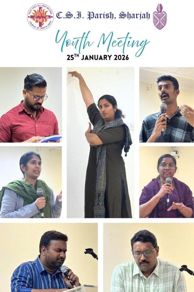 ദൈവവചനത്തെ സൂക്ഷ്മതയോടെ അനുധാവനം ചെയ്യുന്ന കുഞ്ഞുങ്ങൾ  ഷാർജ സി.എസ്.ഐ. പള്ളിയിലെ കുഞ്ഞുങ്ങൾ അത്ഭുതകരമായ താലന്തുകൾ ഉള്ളവരും ദൈവകൃപയിൽ വളർത്തപ്പെടുന്നവരുമാണ്. ചില കുഞ്ഞുങ്ങൾ ഞായറാഴ്ചയിലെ പ്രസംഗങ്ങളുടെ കുറിപ്പുകൾ എടുക്കുന്നത് ശ്രദ്ധയിൽ പെട്ടപ്പോഴാണ് അവർക്കു ഇടവക വികാരിയുടെ…